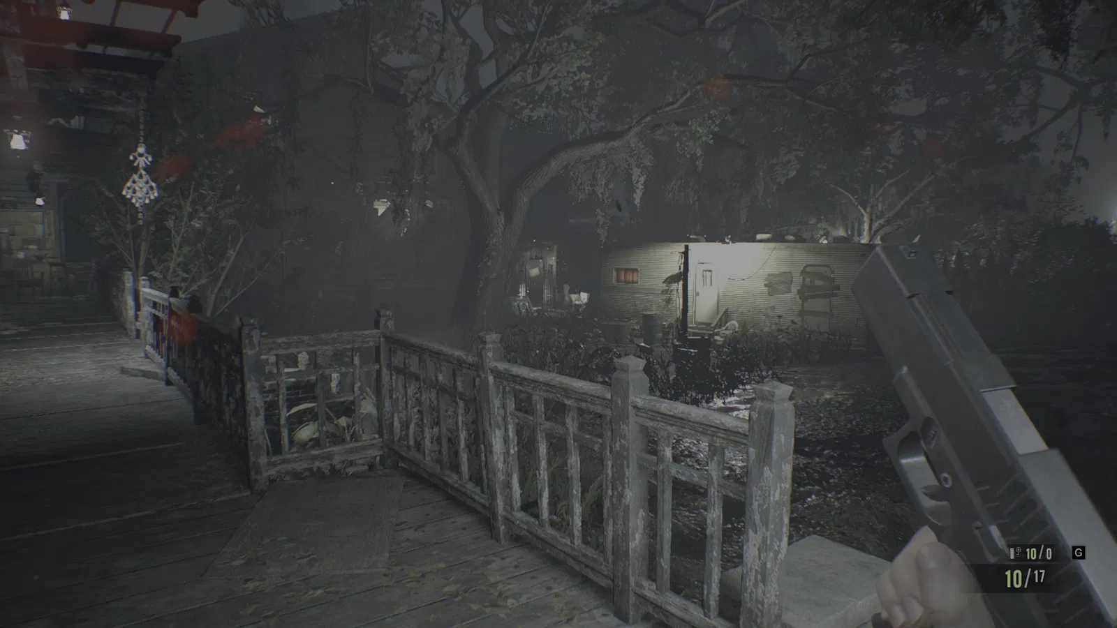 История Resident Evil 7: Biohazard начинается как классический фильм ужасов. Главный герой три года рефлектирует после потери любимой, внезапно получает странное видео с криком о помощи. Живая и измученная Мия просит по другую сторону экрана немедленно приехать в пронизанную болотами Луизиану и спасти ее из страшного плена старого дома. Охваченный желанием как можно скорее воссоединиться с женой, Итан Уинтэрс отправляется в вымышленный город Далви, где на окраине стоит дом семейства Бэйкер. И как бы не были раздуты городские легенды, атмосфера упадка и разрушения охватывает не только деревянную виллу, но и пронзает каждый фрагмент прилегающего окружения. Проржавевшие от времени автомобили хранят в себе старые фотографии и вырезки забытых газет, где-то в стороне вороны доклевывают тушу раздутой и давно мертвой собаки. Странные шумы, болтающиеся на почерневших ветвях диски, лишь укрепляют общее ощущение заброшенности и скрытой опасности, пока вы не обнаружите следы недавнего пребывания местных обитателей, которые вряд ли настроены дружелюбно. Чем дальше вы продвигаетесь к небольшому деревянному домику среди перепутавшихся корней деревьев и разросшихся вьюнов, тем очевиднее становится, в какой ужас может превратиться эта затея.