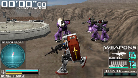 Описание: В основу этой игры положен японский мультсериал(который начинает свое существование чуть ли не с 1979 года, а может не раньше:) Краткий обзор предыдущих n серий – будущее, люди изучили космос, братьев по разуму нету, ну собственно скучно – надо повоевать, короче разделились все на Earth Force(хорошие) и Zeon(плохие), техника конечно крута - эти огромные роботы, которые называются Mobile Suit(Мобильный Костюм или Мобильный Доспех).Роботом управляет не автоматика, а живой человеком из кабины. Надо ли говорить что для поклонников сериала эта игра просто открытие? Сразу же, во время первых битв – услышав знакомые нотки любимых саундтреков, я понял что много часов приятной игры мне обеспечено. Ну а когда на смену обычным безликим пилотам стали открываться знакомые с детства лица, с привычными голосами, то радости моей не было границ. Всё, начиная от музыки, голосов персонажей, знакомой местности и заканчивая единицами боевой техники и сюжетом – все выполнено в контексте сериала. Это огромное удовольствие поучаствовать в событиях любимого мультика.